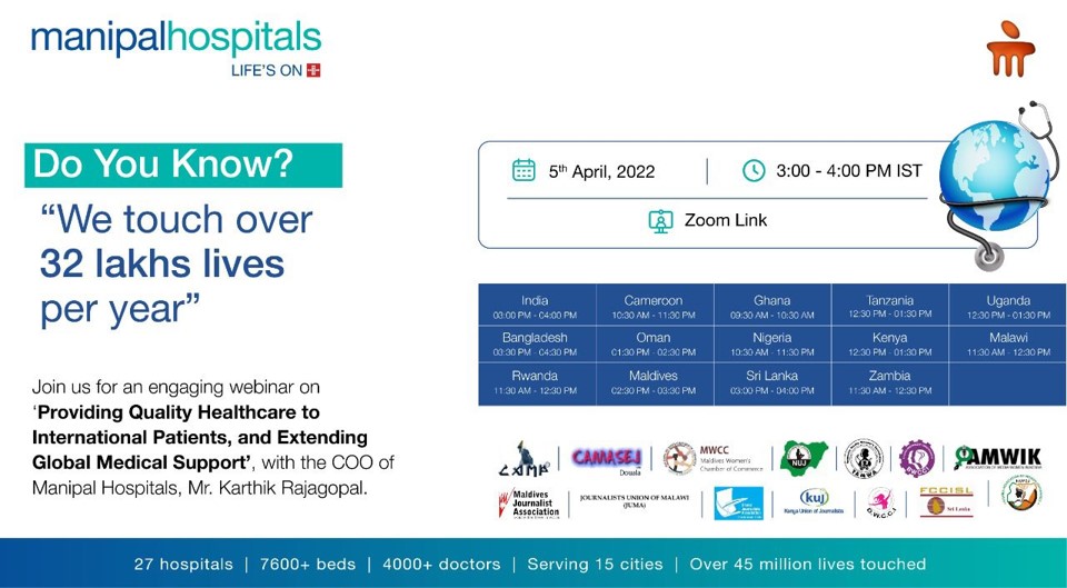 Manipal Hospitals provide quality and compassionate care to international patients, keeping their safety and comfort as the utmost priority. The medical team at Manipal Hospitals follows a humanized approach to reduce any sense of stress and fear in patients that they may experience prior to and after their treatment.