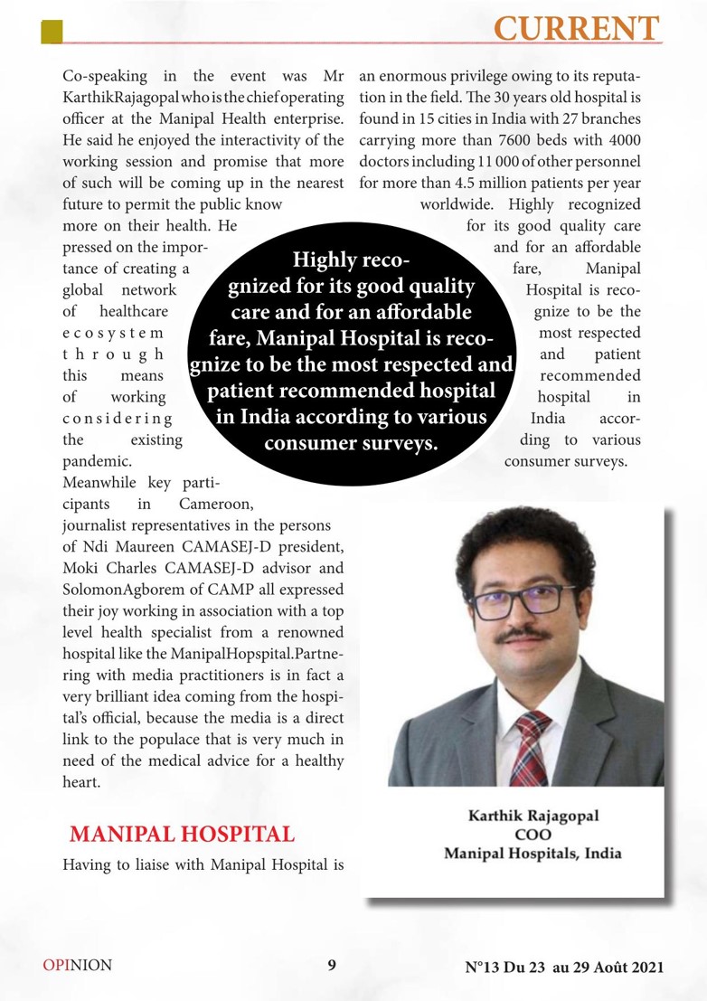 Manipal Hospitals is the first hospital in India to receive ISO 9001:2000 certification in clinical, nursing, diagnostics, and allied areas. We have a presence in more than 24 cities in India, including Bangalore, Mysore, Salem, Delhi, Jaipur, Pune, and Kolkata. Located at Old Airport Road, Bangalore, our oldest hospital, which has more than 600 beds, is one of a kind. With expert doctors and state-of-the-art technology, international patients are in the right hands at Manipal. Some things that set us apart from others are: